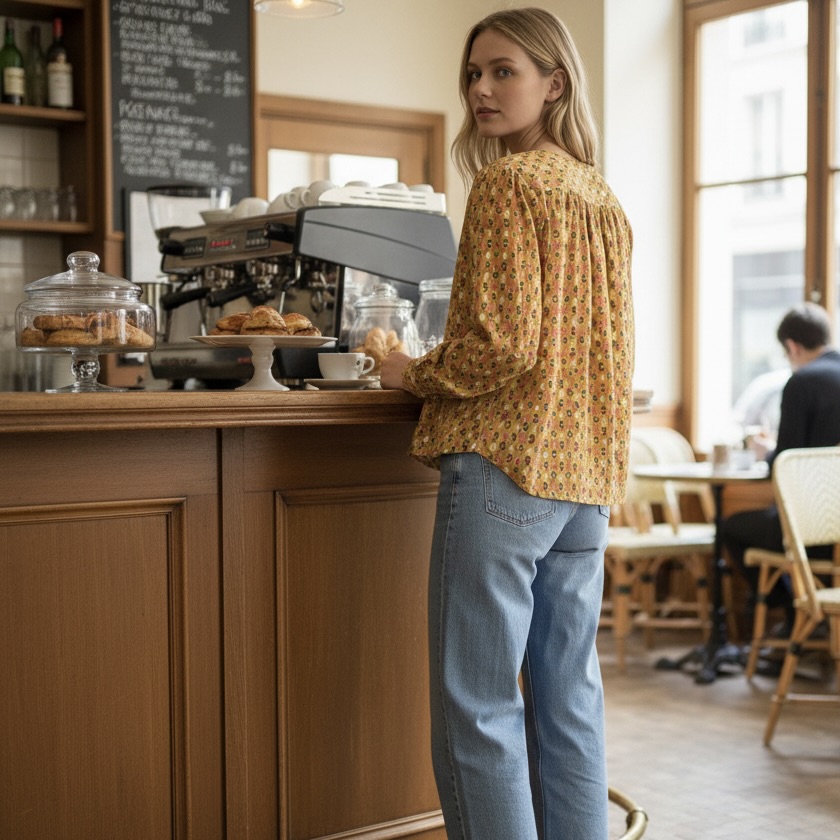 Les plis à l’arrière lui donnent une allure de chemise d’artiste.