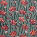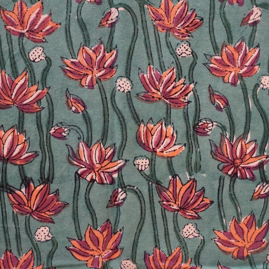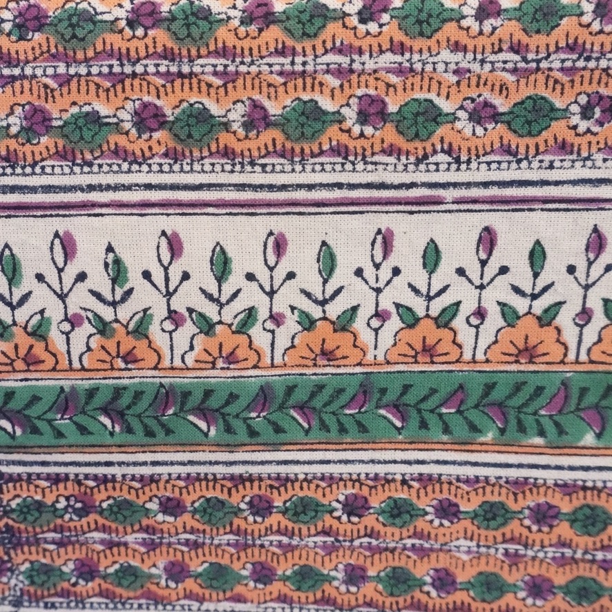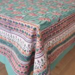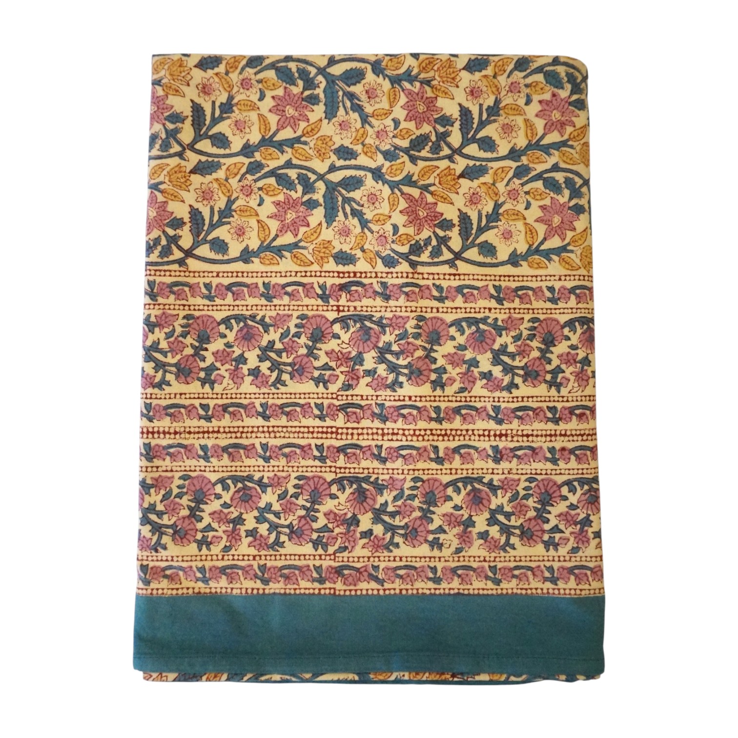 Cette nappe en coton a été imprimée de manière artisanale au bloc de bois en Inde.