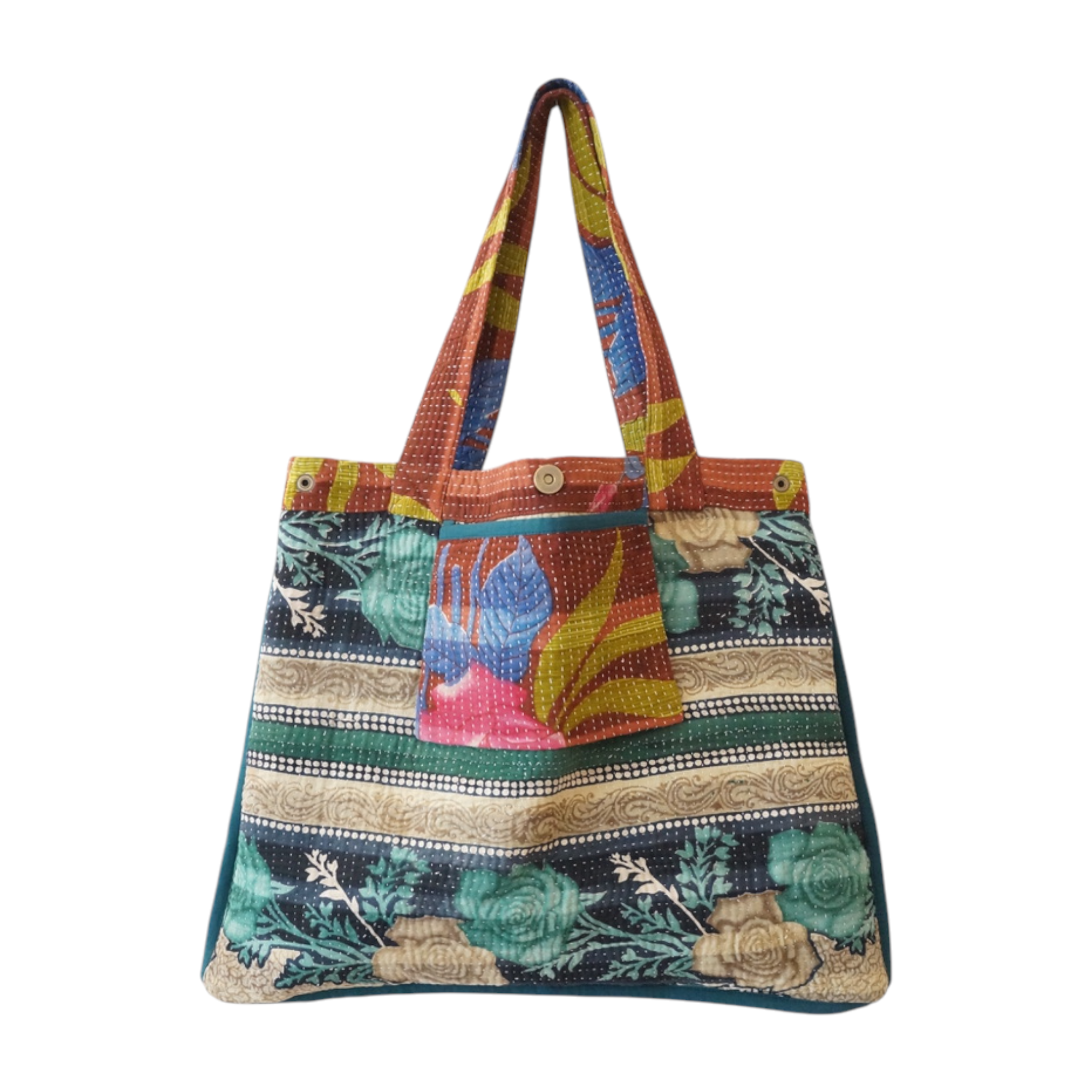 Format intermédiaire entre notre tote bag en kantha et notre cabas.